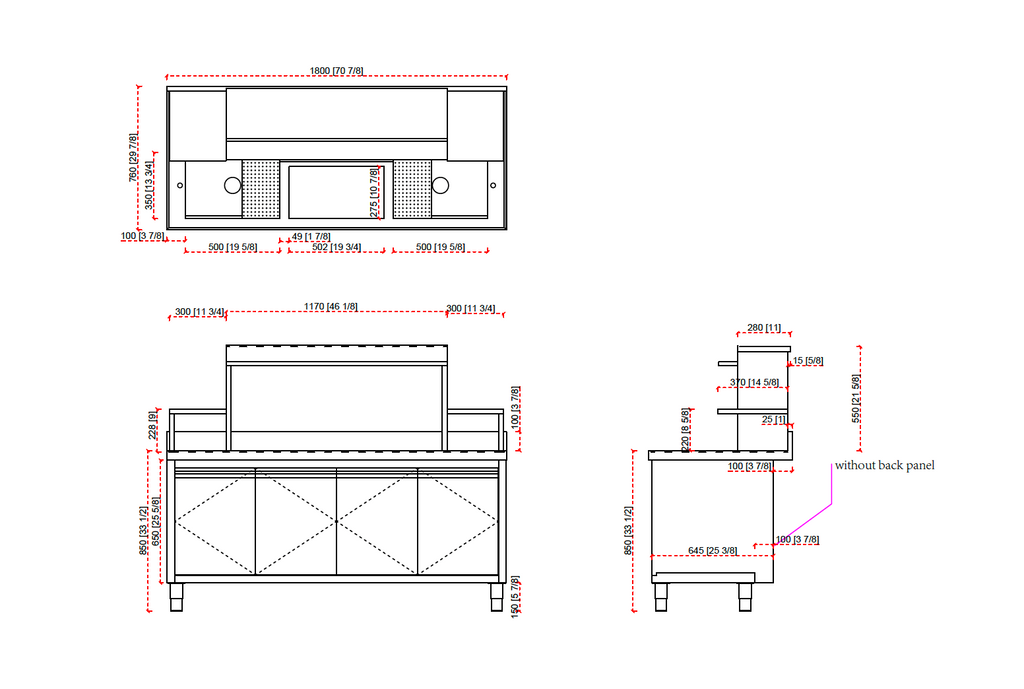 - 70,9" L x 29,9" P x 55,1" H