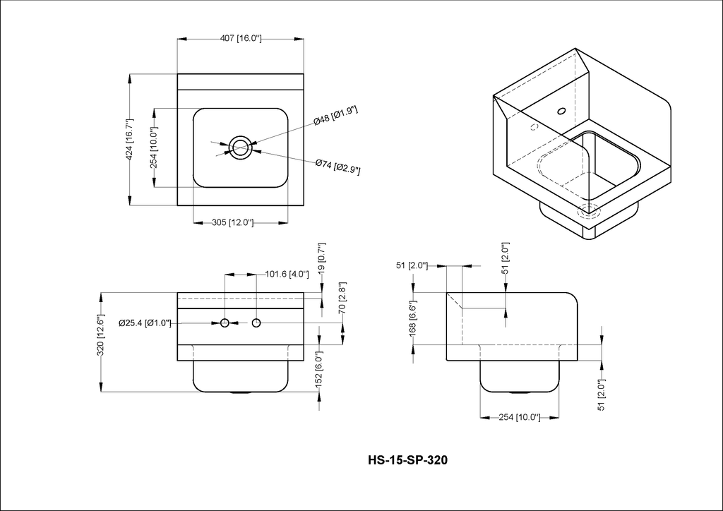 - Évier de 10" x 12" avec des dimensions extérieures de 16"L x 16-3/4"P x 12-3/5"H