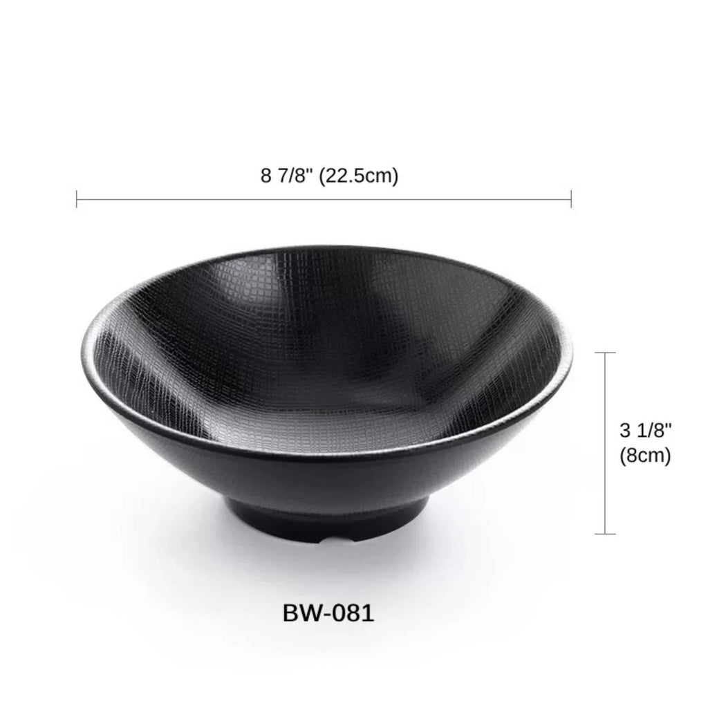 Le bol rond noir en mélamine CHEFCO à motif texturé (BW-081) arbore un design raffiné et un motif texturé qui rehausse son esthétique. Polyvalent, ce bol est idéal pour servir une grande variété de plats, des soupes aux salades. Sa finition noire profonde lui confère une allure moderne et élégante, convenant aussi bien aux repas décontractés qu'aux occasions plus formelles. Fabriqué en mélamine résistante, ce bol est léger, incassable et facile à nettoyer, alliant style et praticité au quotidien comme lors des grandes occasions.