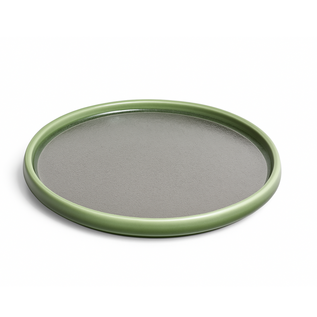 (PTC00427) Assiette en céramique verte et argentée de 11 po avec centre texturé