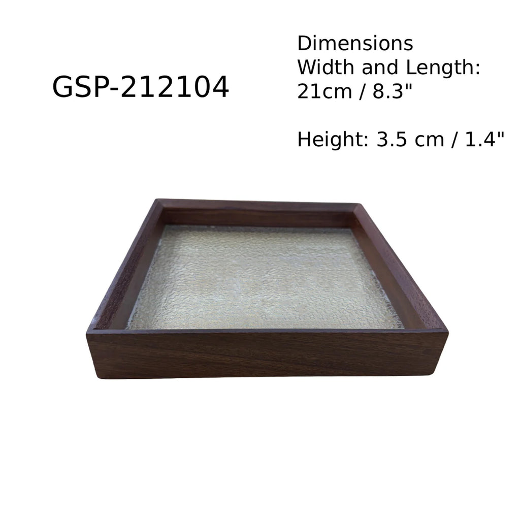 Chefco’s GSP-212104 is a square serving plate featuring a textured glass base encased in a rich wooden frame. Measuring 21 cm across and 3.5 cm in height, it blends elegance with practicality. Ideal for appetizers, desserts, or artistic plating.