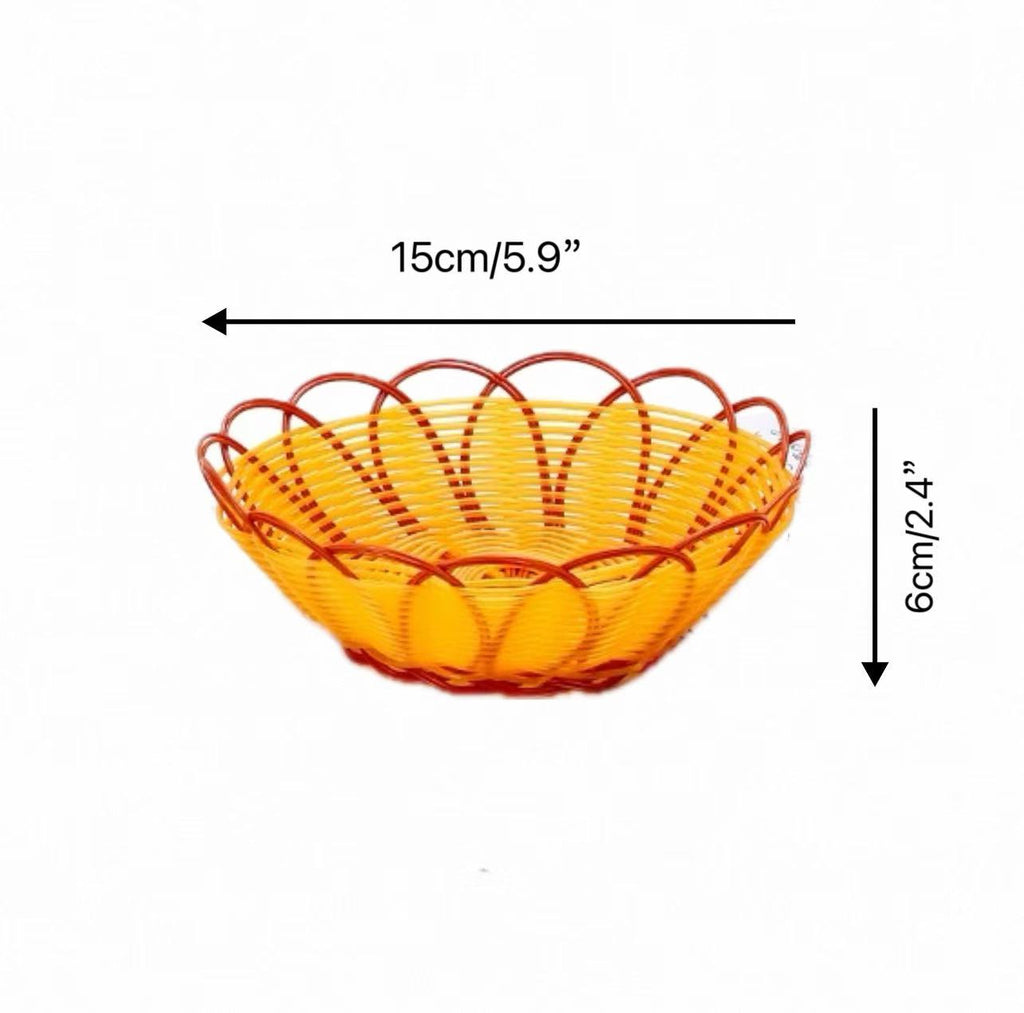 Ce panier de service rond CHEFCO à bordure orange tressée (RWB-156) est idéal pour présenter pains frais, viennoiseries, amuse-bouches et autres gourmandises en toute occasion. Du buffet à la table, ce panier arbore un design rustique élégant et fonctionnel. Fabriqué en corde de polypropylène tressée résistante, il apportera une touche raffinée à votre table ou fera un bel objet de décoration.
