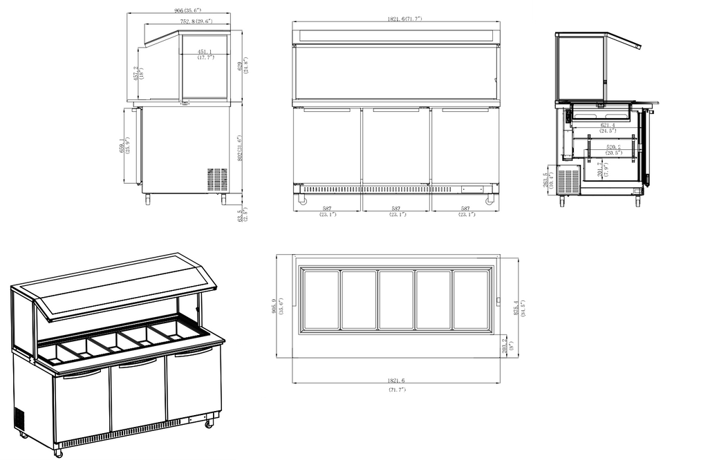 - Dimensions extérieures (L x P x H) : 61 1/8" x 36 1/2" x 35 5/8" ou 44", 24 bacs