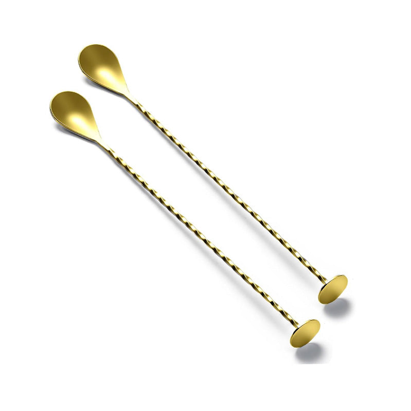 ELEGANT LOOK: Gorgeous gold stirring spoons embellishes your wine glass, mirror finish shining under the light, the handle's unique design provides better control and grip; bring you a high level of experience.