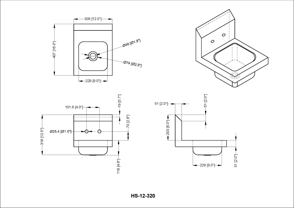 9" x 9" sink bowl with exterior dimensions of 12"W x 16"D x 13"H