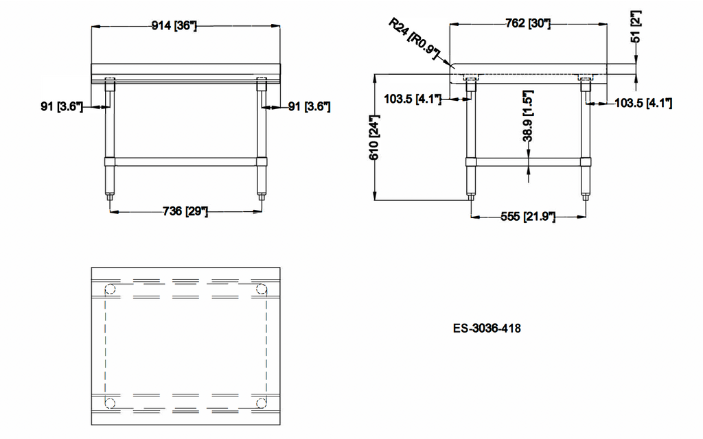 Chefco, ES-3036-418, 30" x 36" 18-Gauge Stainless Steel Equipment Stand with Galvanized Undershelf
