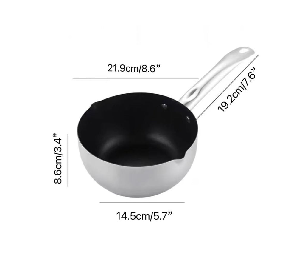 Its compact, deep-bowl design is perfect for heating, simmering, boiling, and pouring, while the riveted long handle ensures stability, comfort, and safe handling. With dual pour spouts on both sides, it’s ideal for right- and left-handed use.