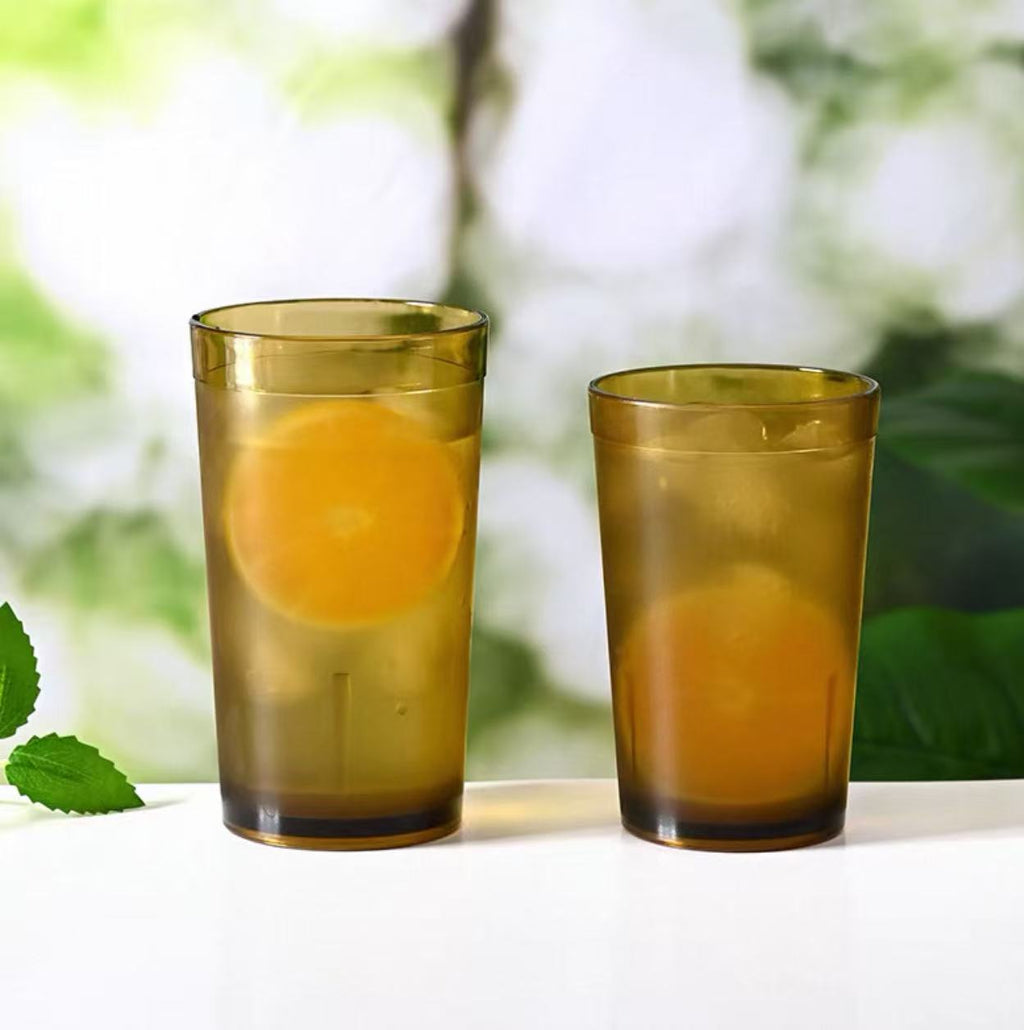 This CHEFCO Polycarbonate Water Cup, Brown(JB-8871B) is perfect for serving water, soda, and other delicious iced drinks. This is a classic design with its pebbled exterior that provides a comfortable surface for users to hold. It's clear polycarbonate construction allows for easy cleaning and allows staff to identify when the tumblers needs to be topped up. This is an affordable option compared to glassware thanks to its durable plastic construction.